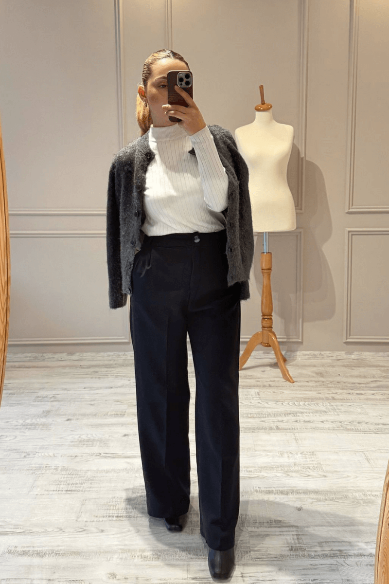 Rahat ve şık bir görünüm sunan beli lastikli siyah pantolon, günlük kullanım için idealdir. Esnek beli sayesinde konfor sağlar, cepleriyle pratiklik sunar. Hafif kumaşı sayesinde hareket özgürlüğü tanır, her ortamda kolayca kombinlenebilir. Kullanışlı ve stil sahibi bir tercih.