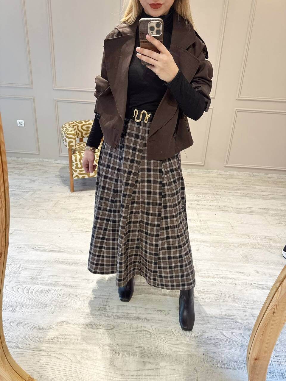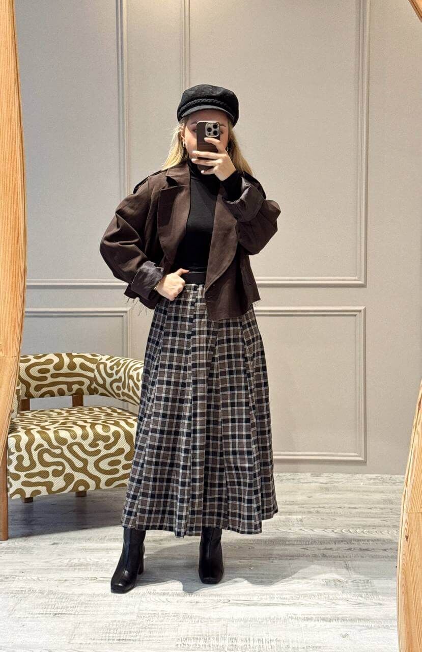 Ekose maxiboy etek, rahat kullanımı ve premium kalite kumaşıyla öne çıkar. Modaya uygun desenleri sayesinde şıklığı tamamlar. Günlük ve özel kombinler için ideal olan bu etek, her mevsim stilinize zarif dokunuşlar katar. Kullanışlı kesimi ile konfor sağlar.