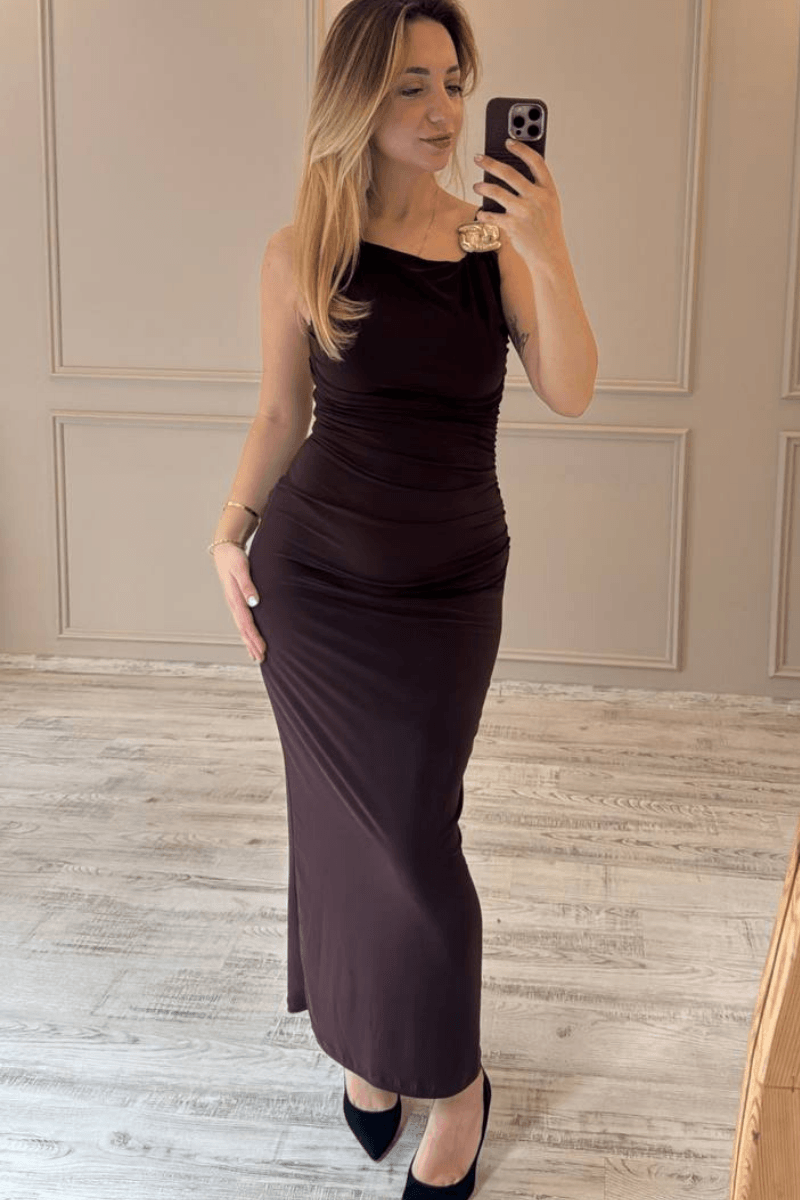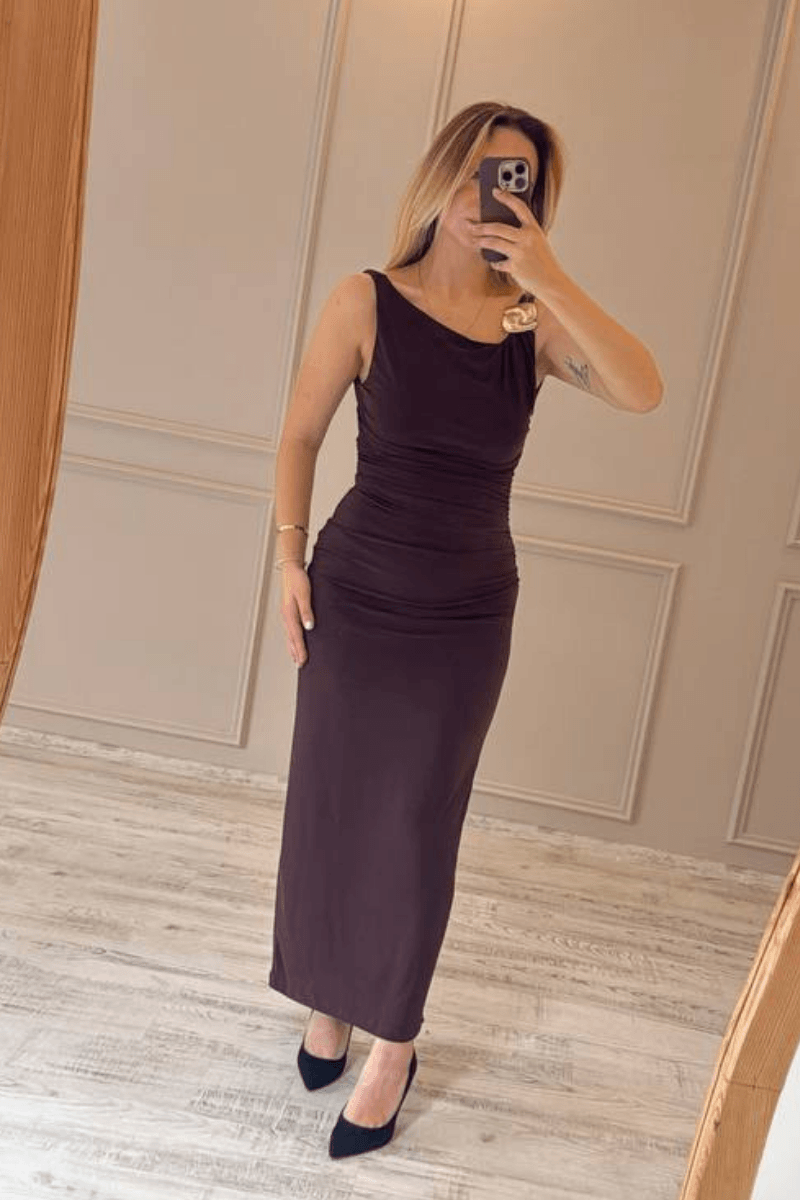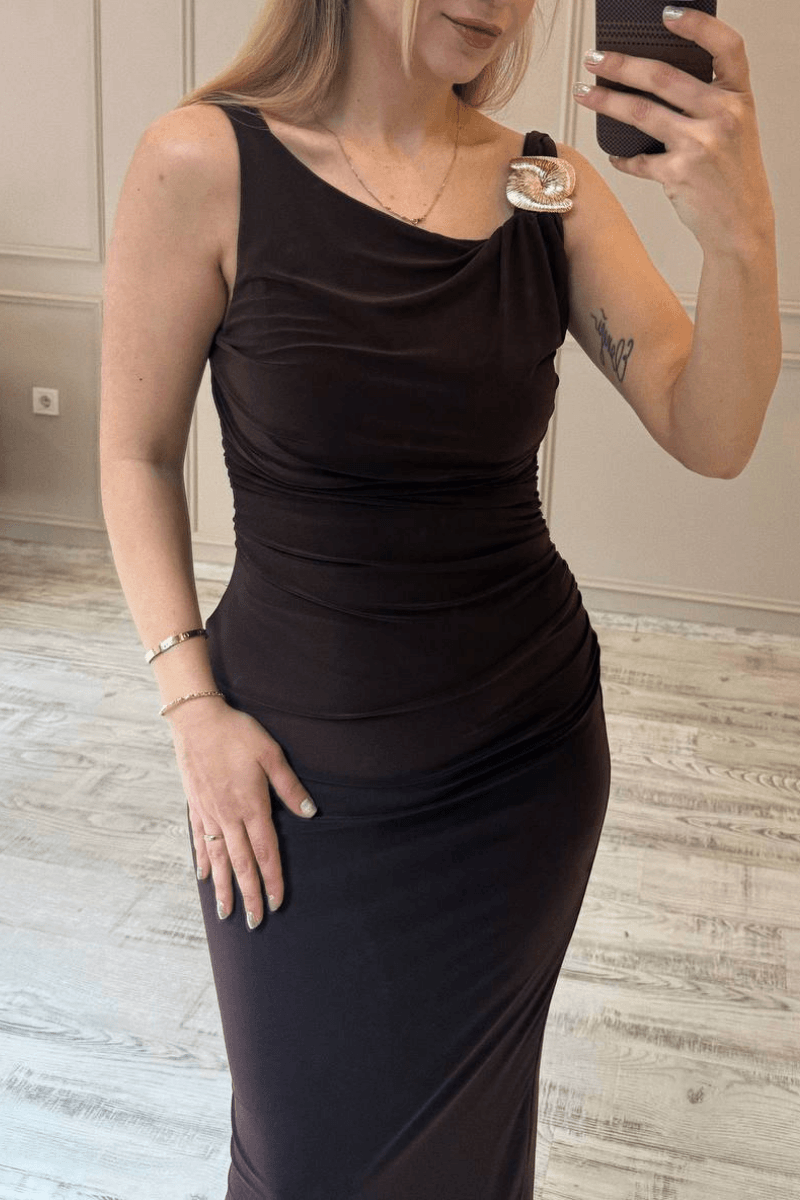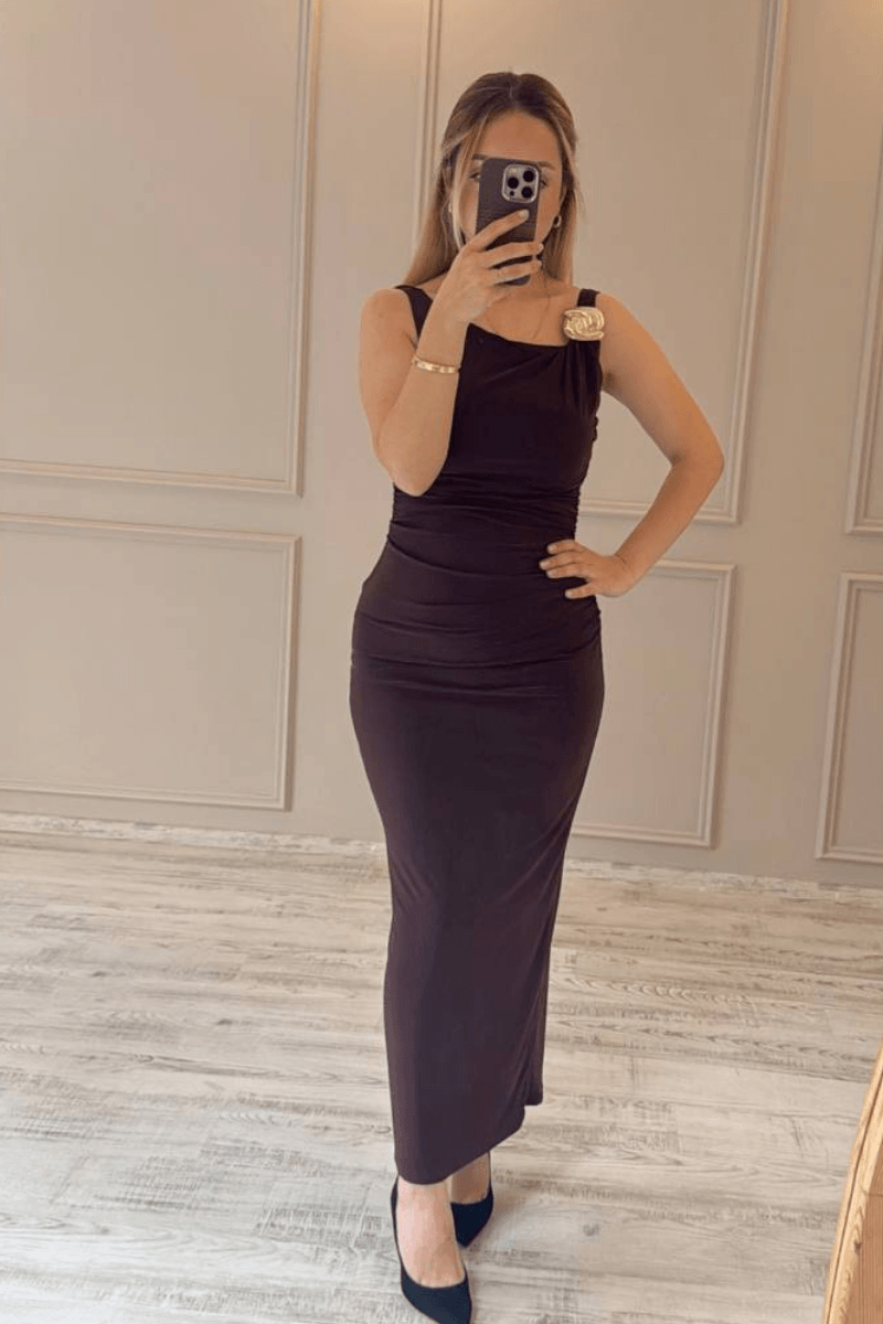 Gold Tokalı Midi Boy Gece Elbisesi