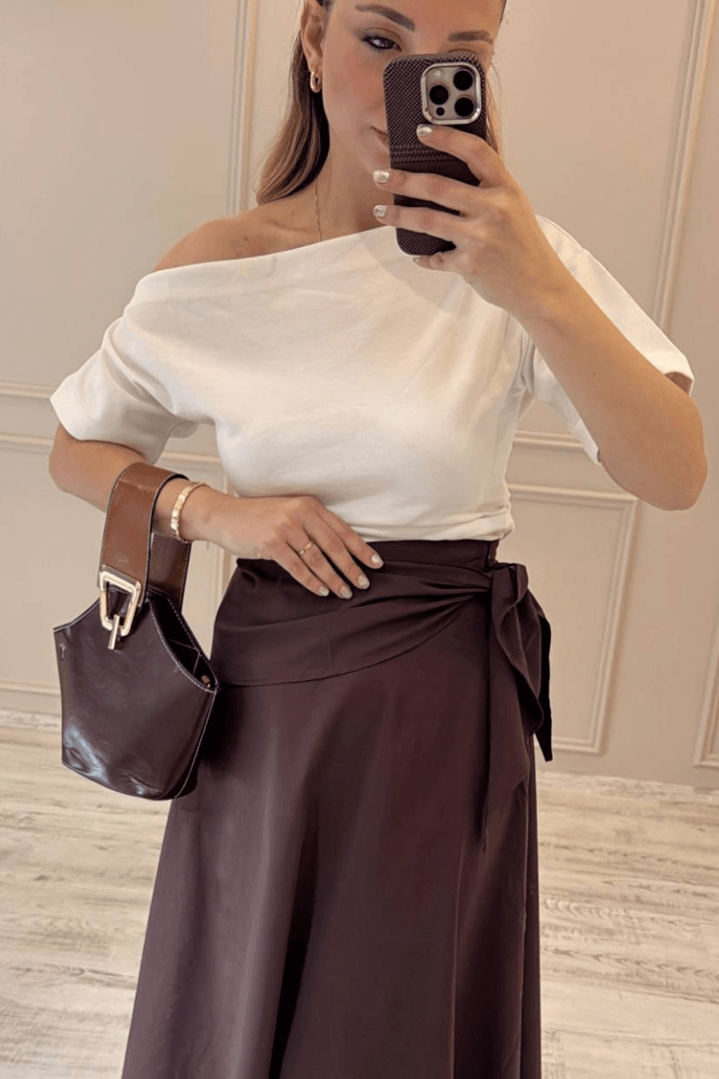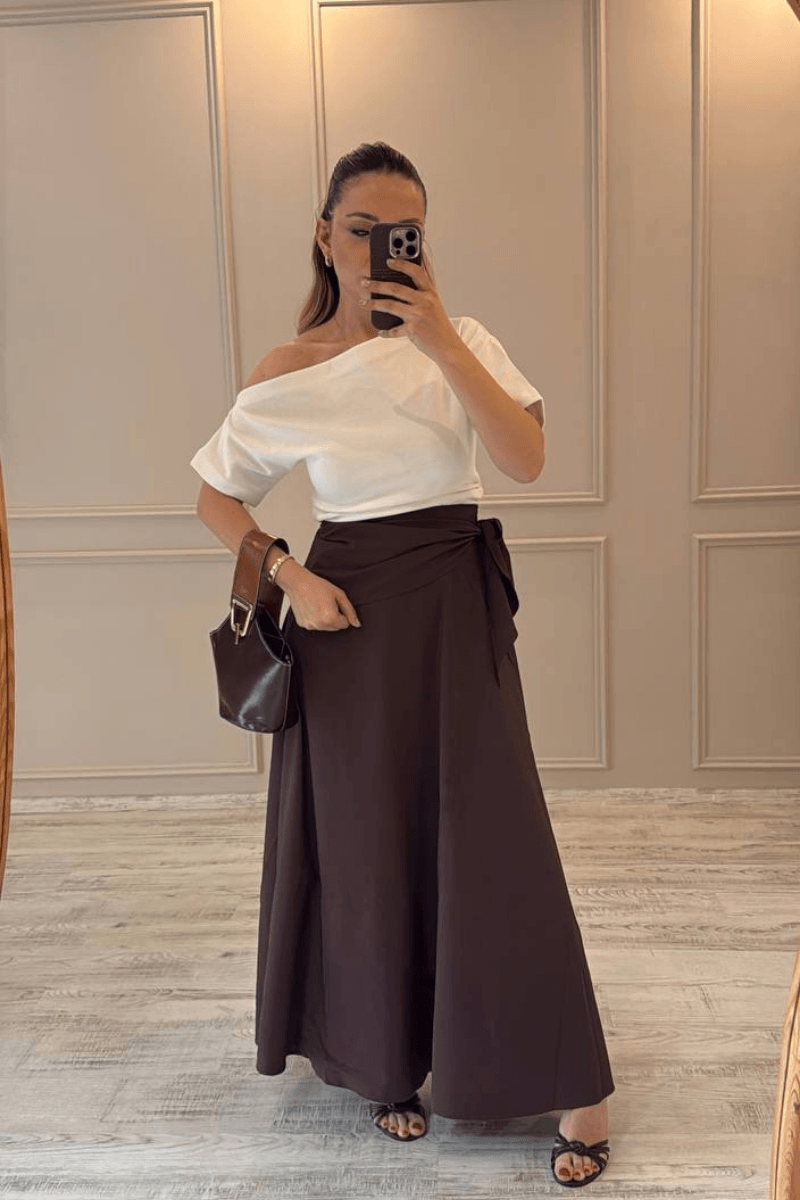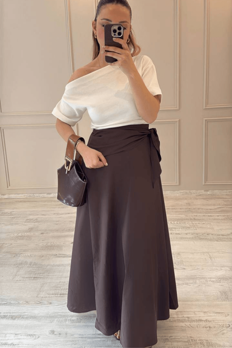 Kahve/ Maxi Boy Fularlı Etek
