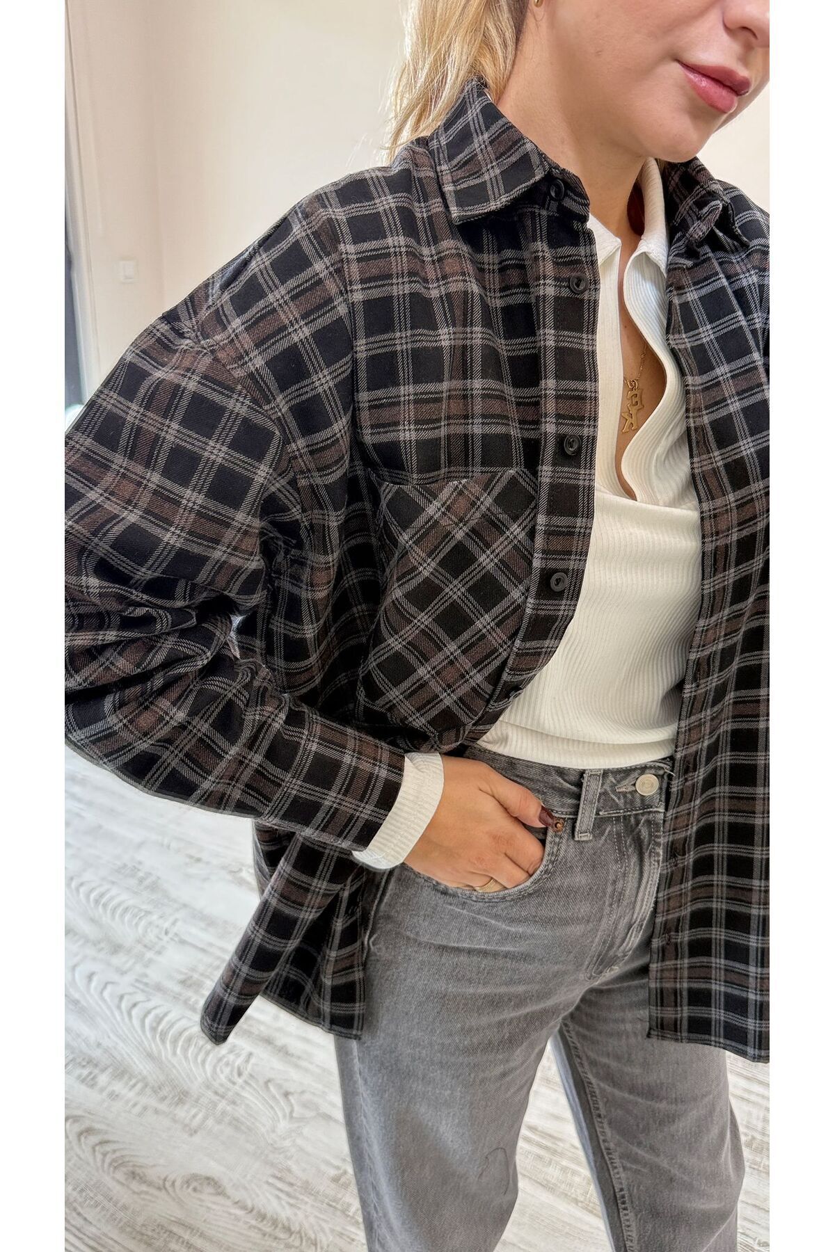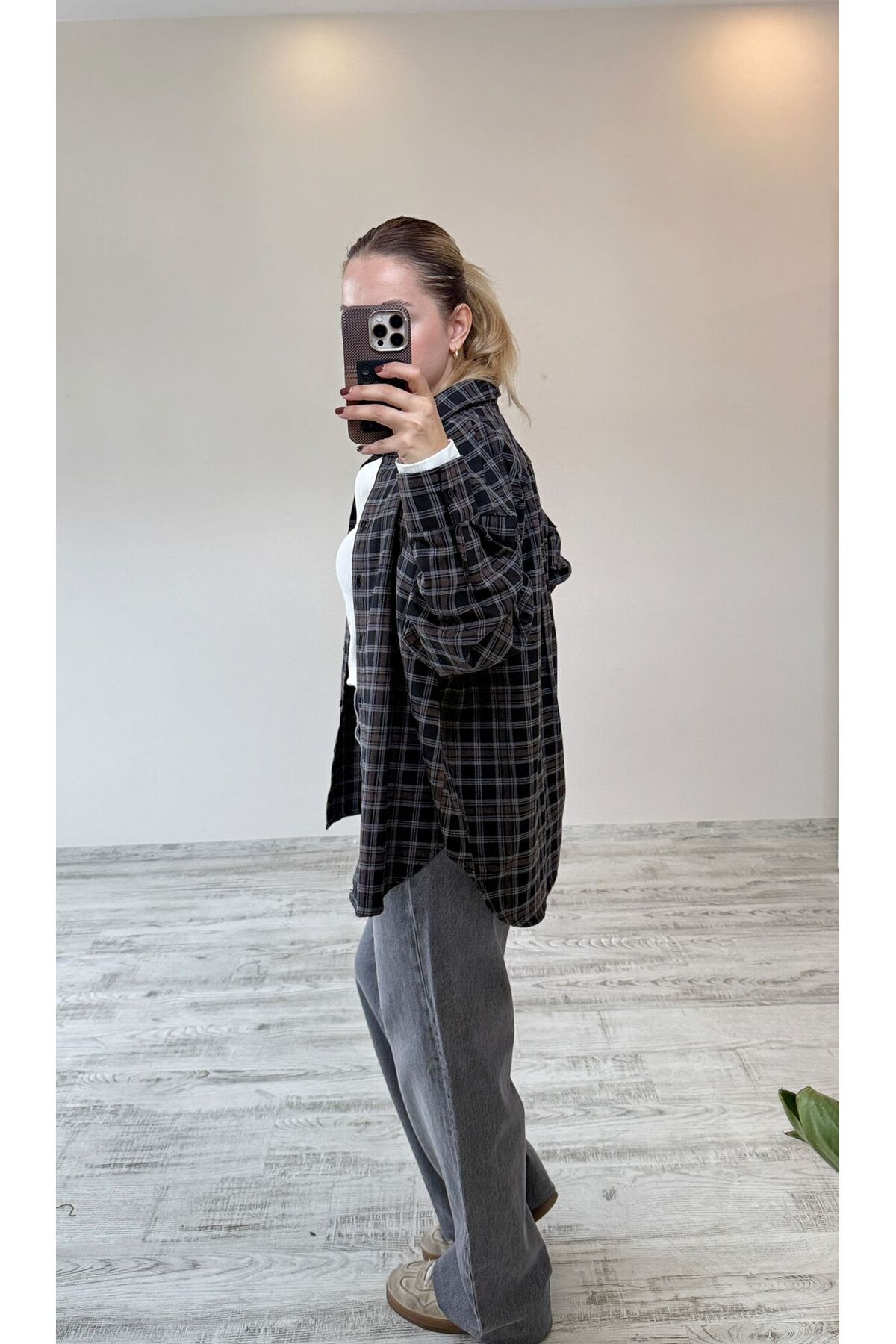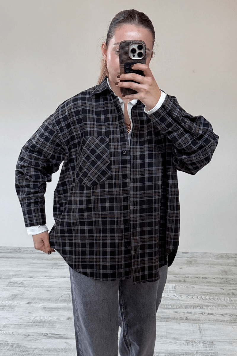Kahverengi Ekose/Kareli Oversize Gömlek