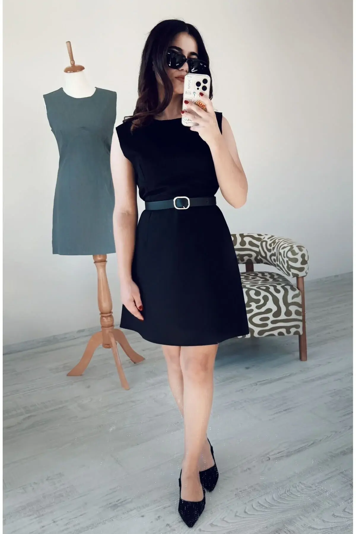 Kısa Ters Biyeli Kolsuz Mini Elbise Siyah
