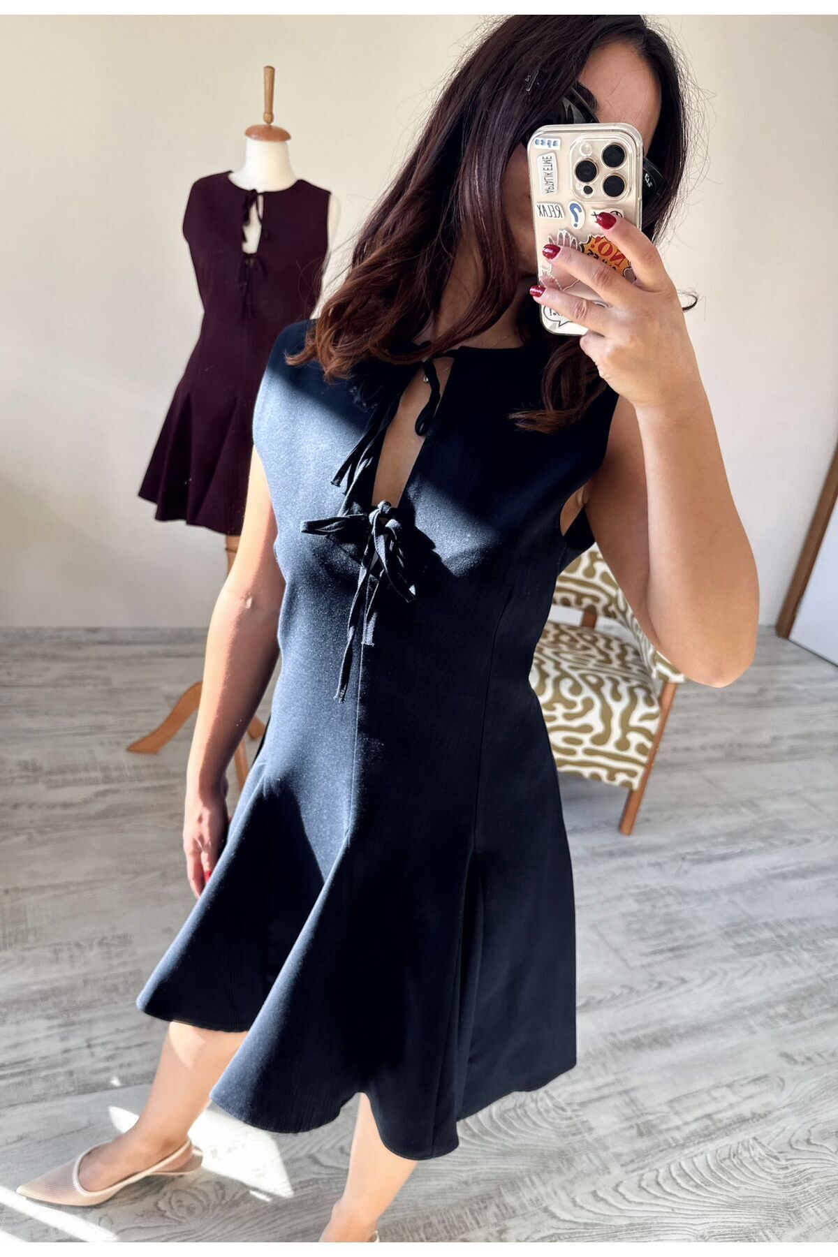 Önü Bağcıklı Pileli Dizüstü Viskon ElbiseÖnü Bağcıklı, Viskon kumaş , A Kesim Pileli modeldir.