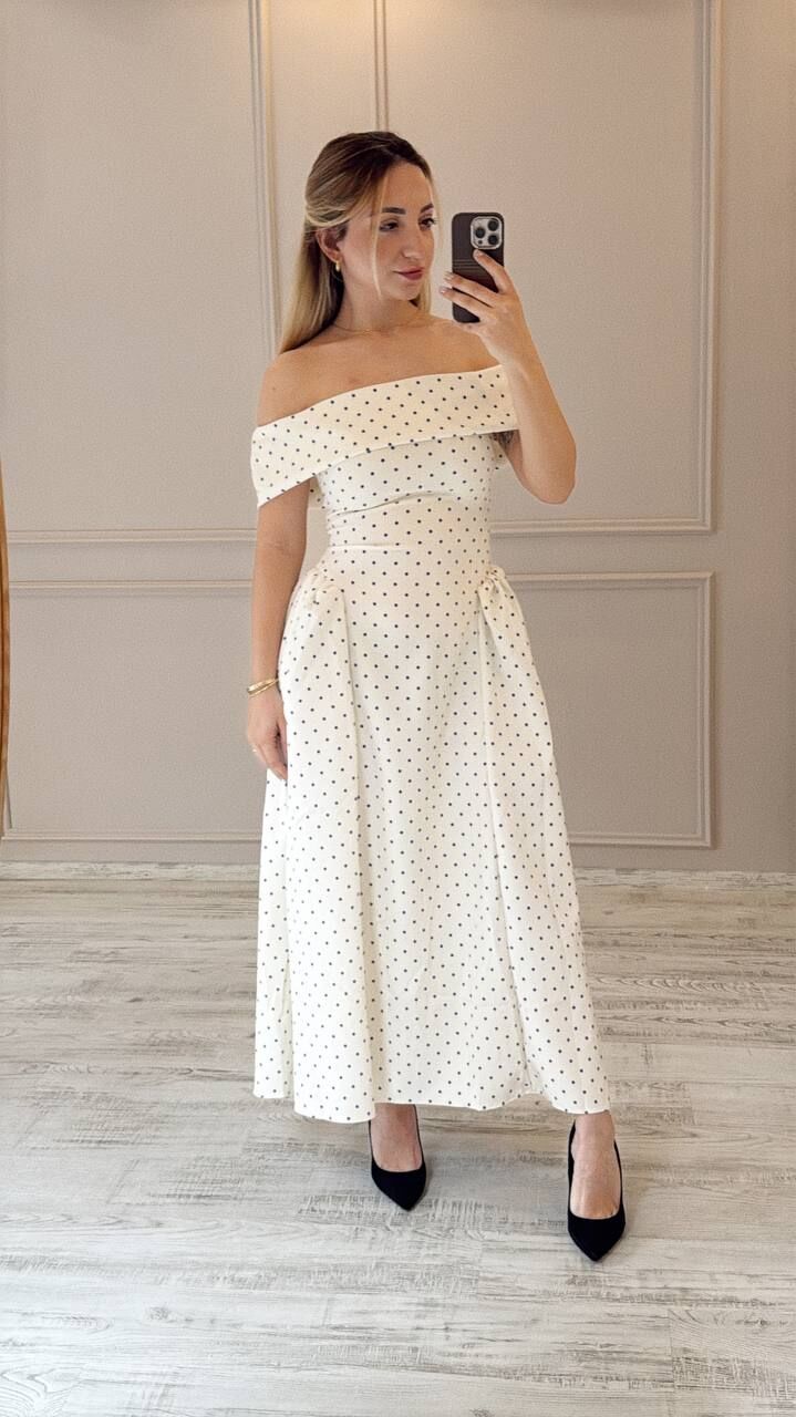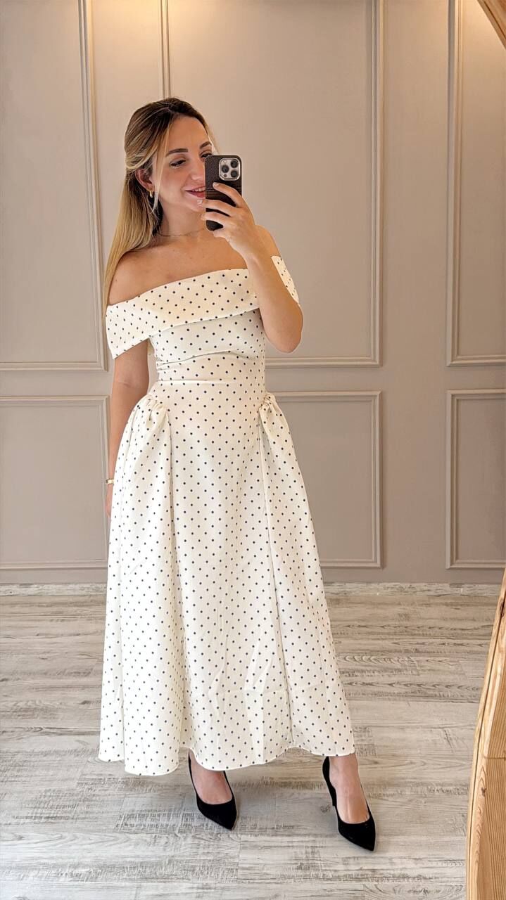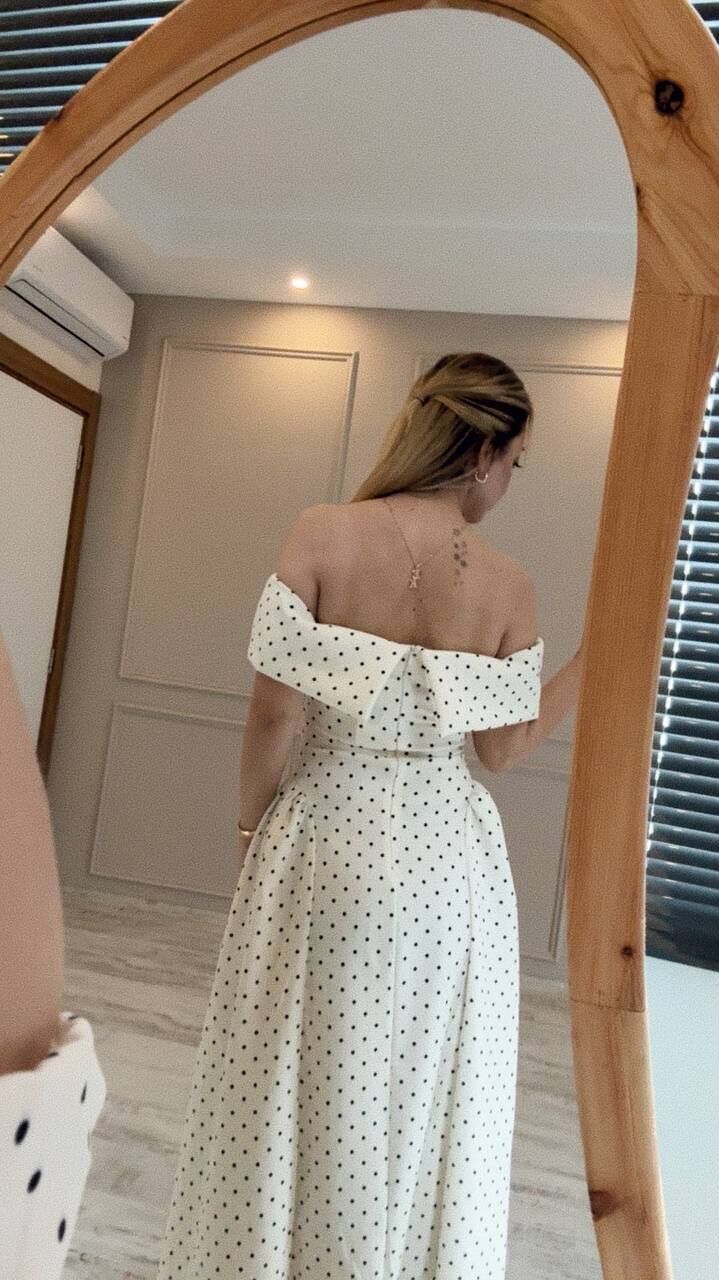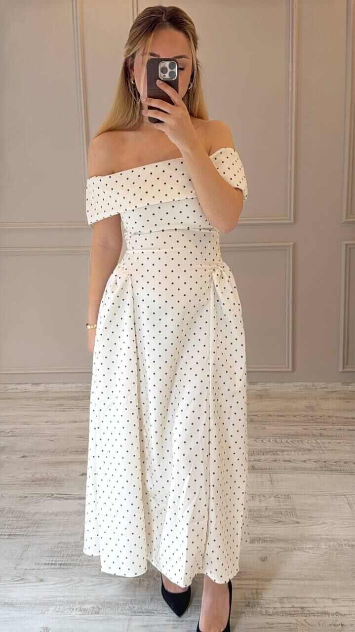 Puantiyeli midi boy elbise, şıklığı ve zarafeti bir arada sunar. Nefes alan kumaşı sayesinde uzun süre konforlu kullanım sağlar. Düşük omuz detayı, romantik bir dokunuş katar. Özel günlerinizde fark yaratmak için ideal bir tercih. Hem rahat hem stil sahibi görünmek isteyenlere uygundur.