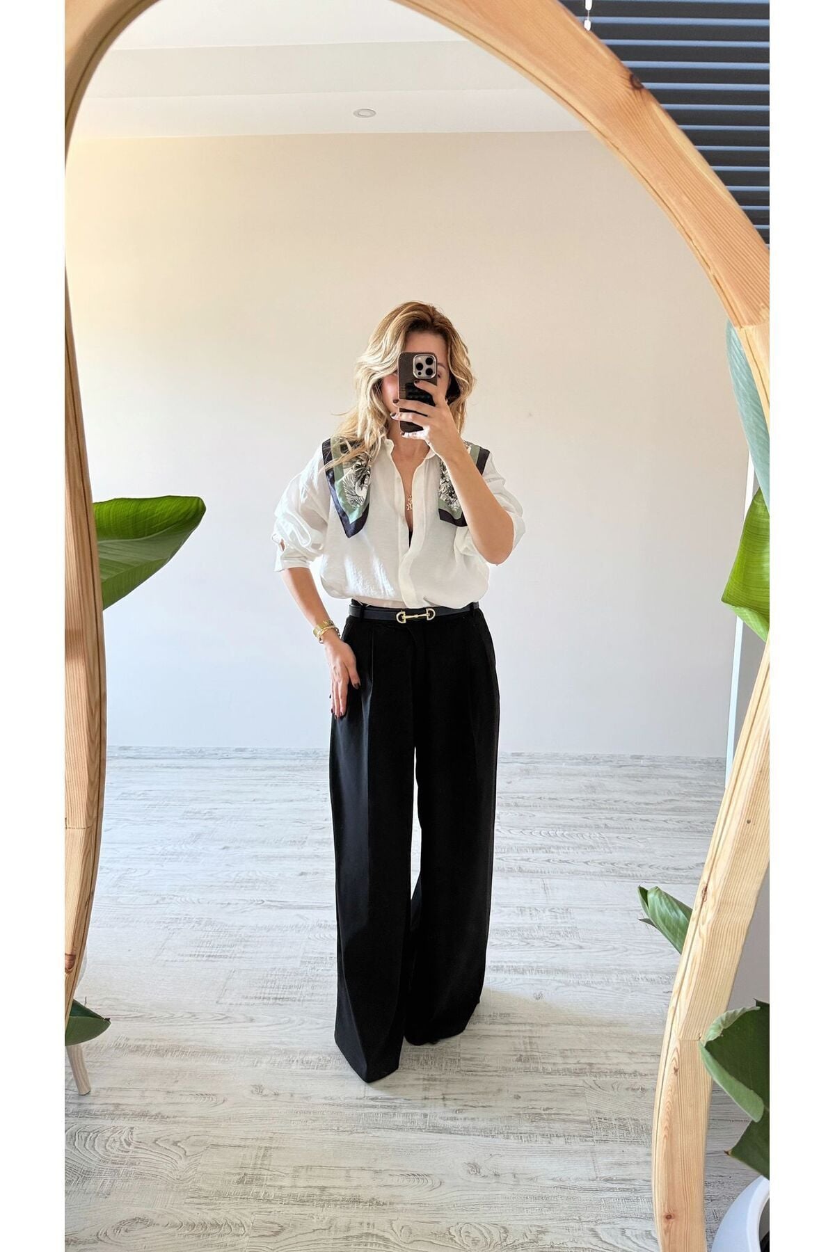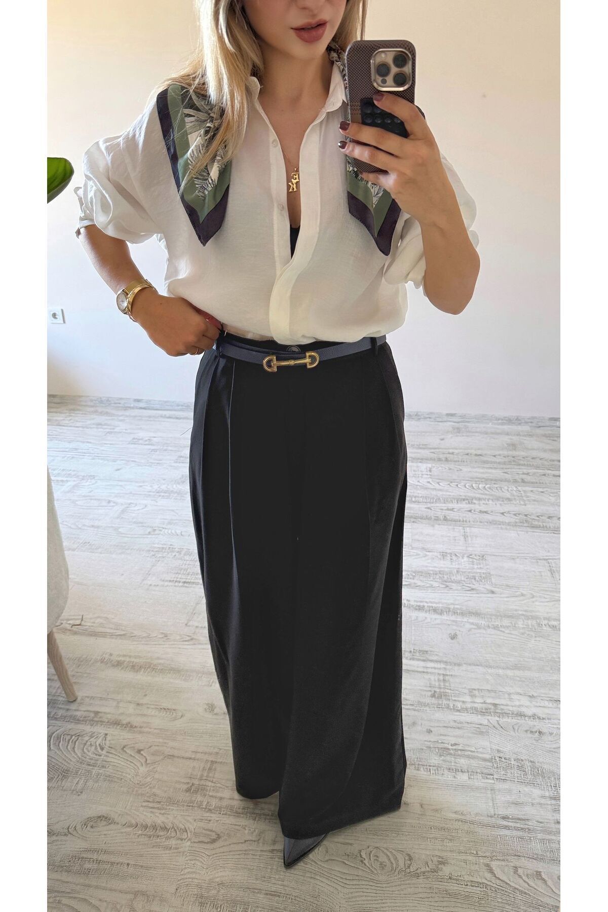 Siyah Çift Pileli Geniş Paça Palazzo Kumaş Pantolon