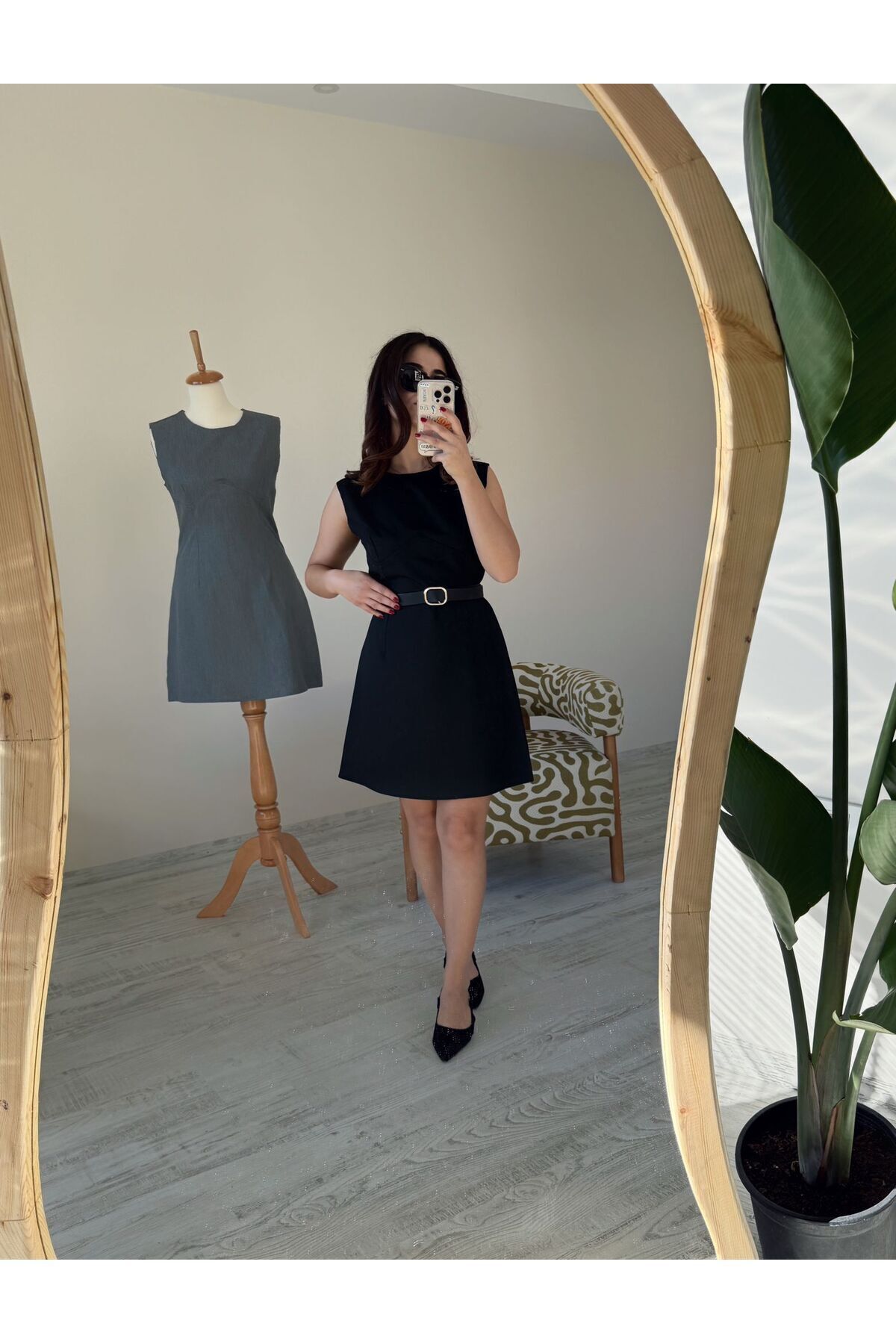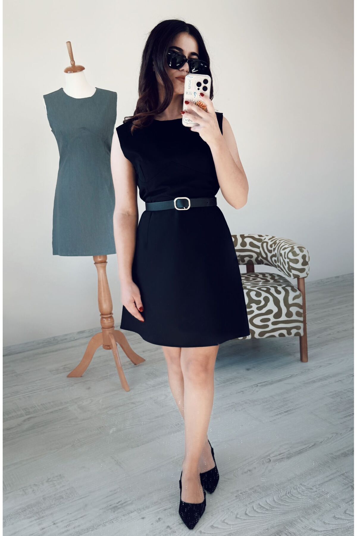 Siyah Kısa Ters Biyeli Kolsuz Mini Elbise