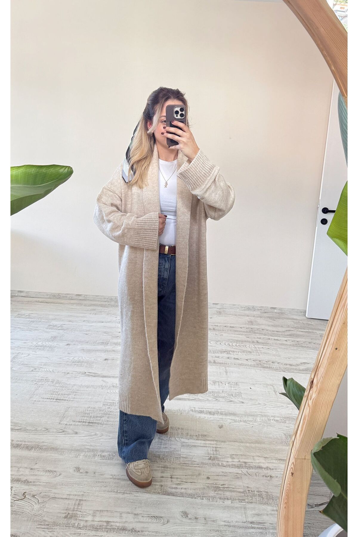 Uzun Triko Hırka Ürün Maxi boy uzunlukta triko dokuma kumaş hırkadır.
