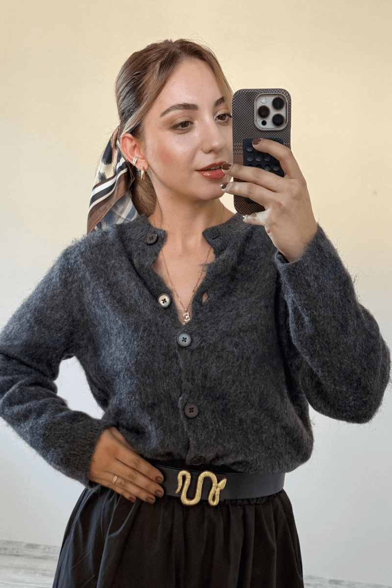 Yumoş Kumaş Düğmeli Hırka/Antrasit