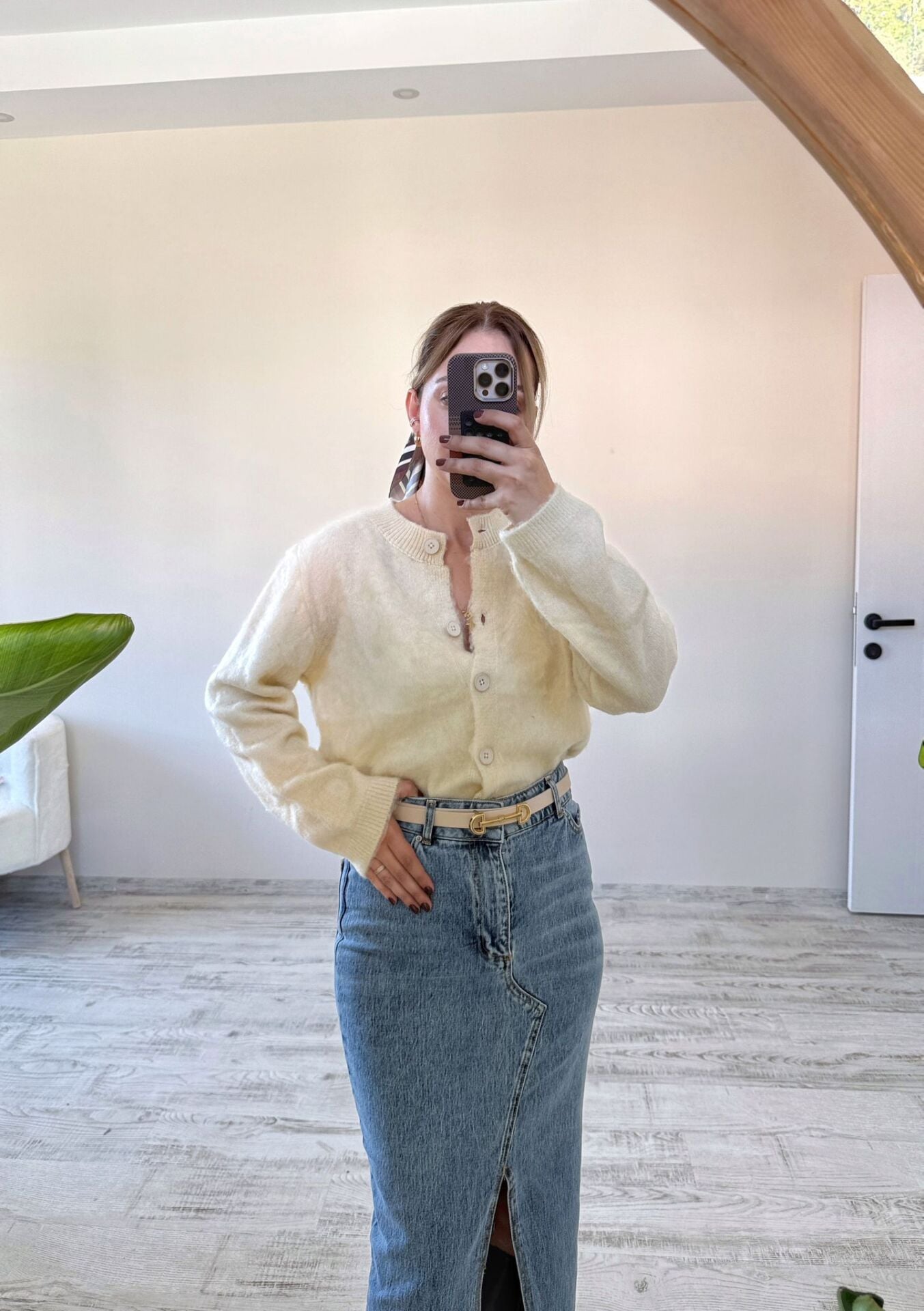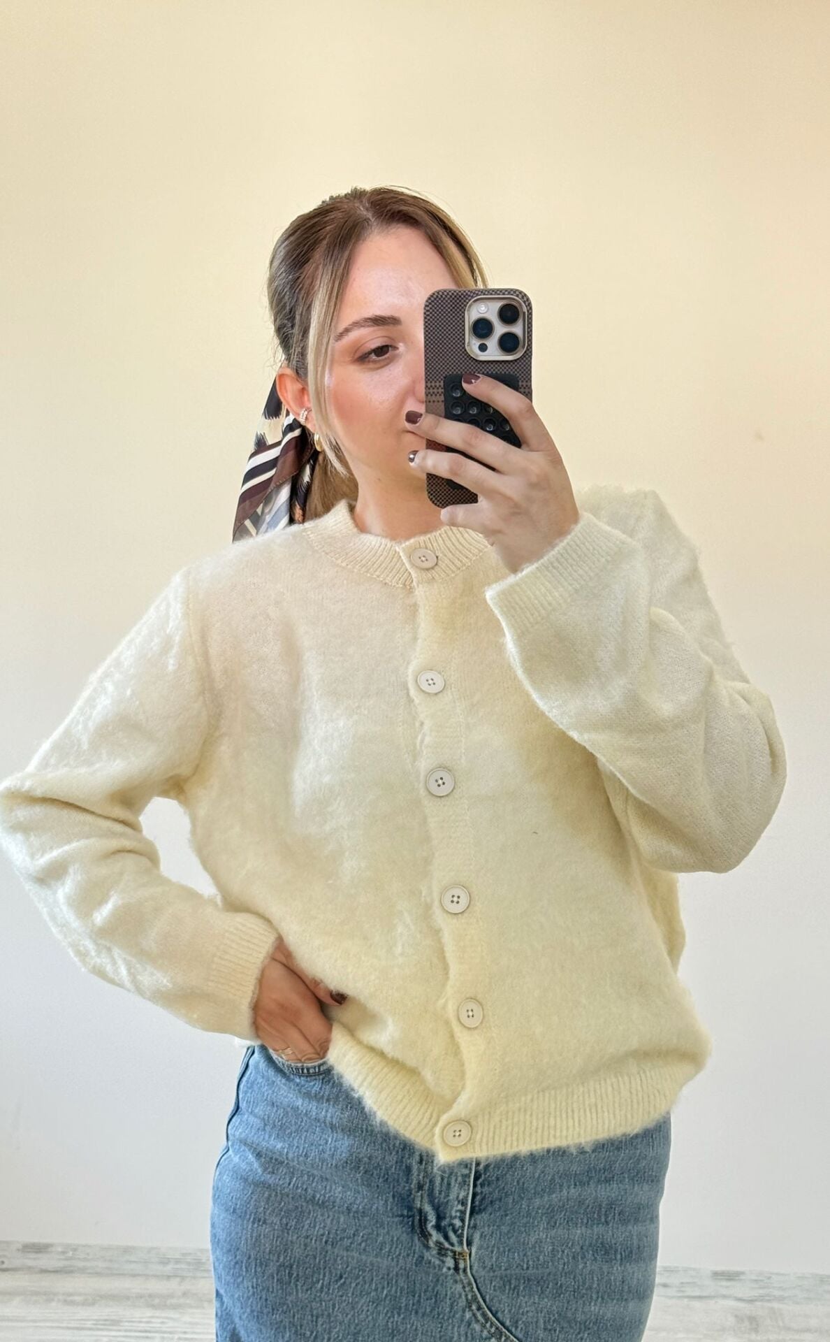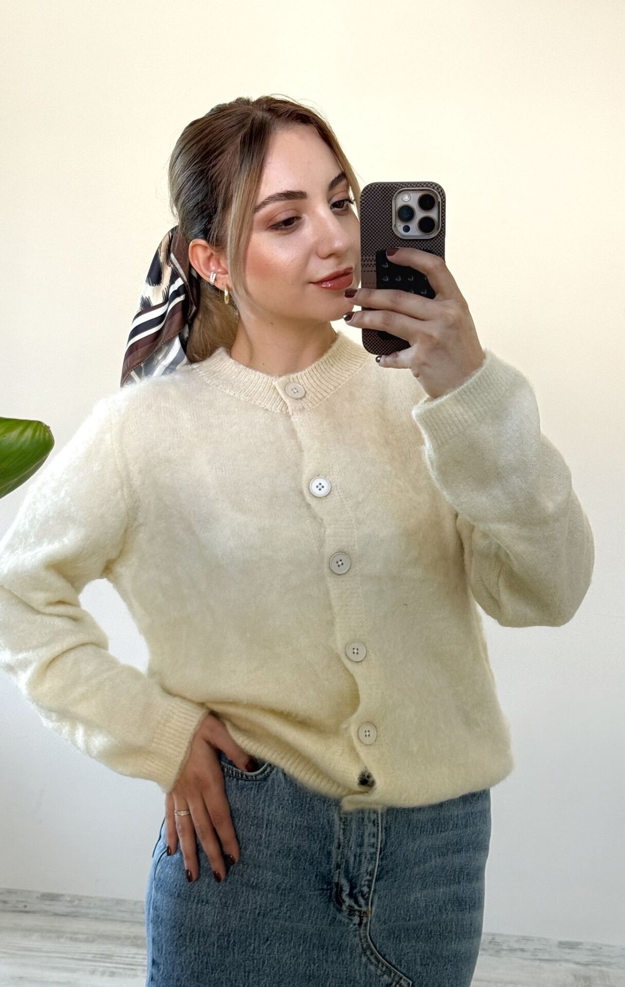 Yumoş Kumaş Düğmeli Hırka/ Ekru